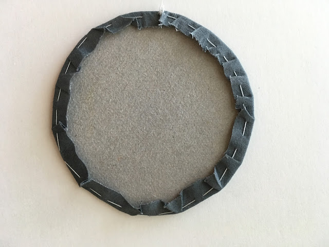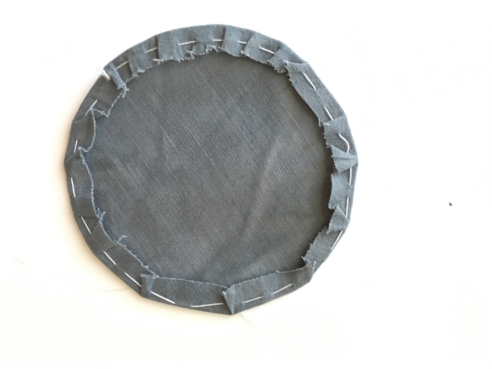 Insert the cardboard piece and pull thread to tighten. Iron edges down over the cardboard.