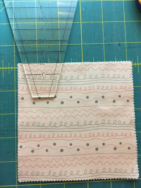 Stack several layers of fabric together (yay! for cutting multiple pieces) and lay the template on top. Cut using your rotary cutter, my favorite is the Olfa Cutter.