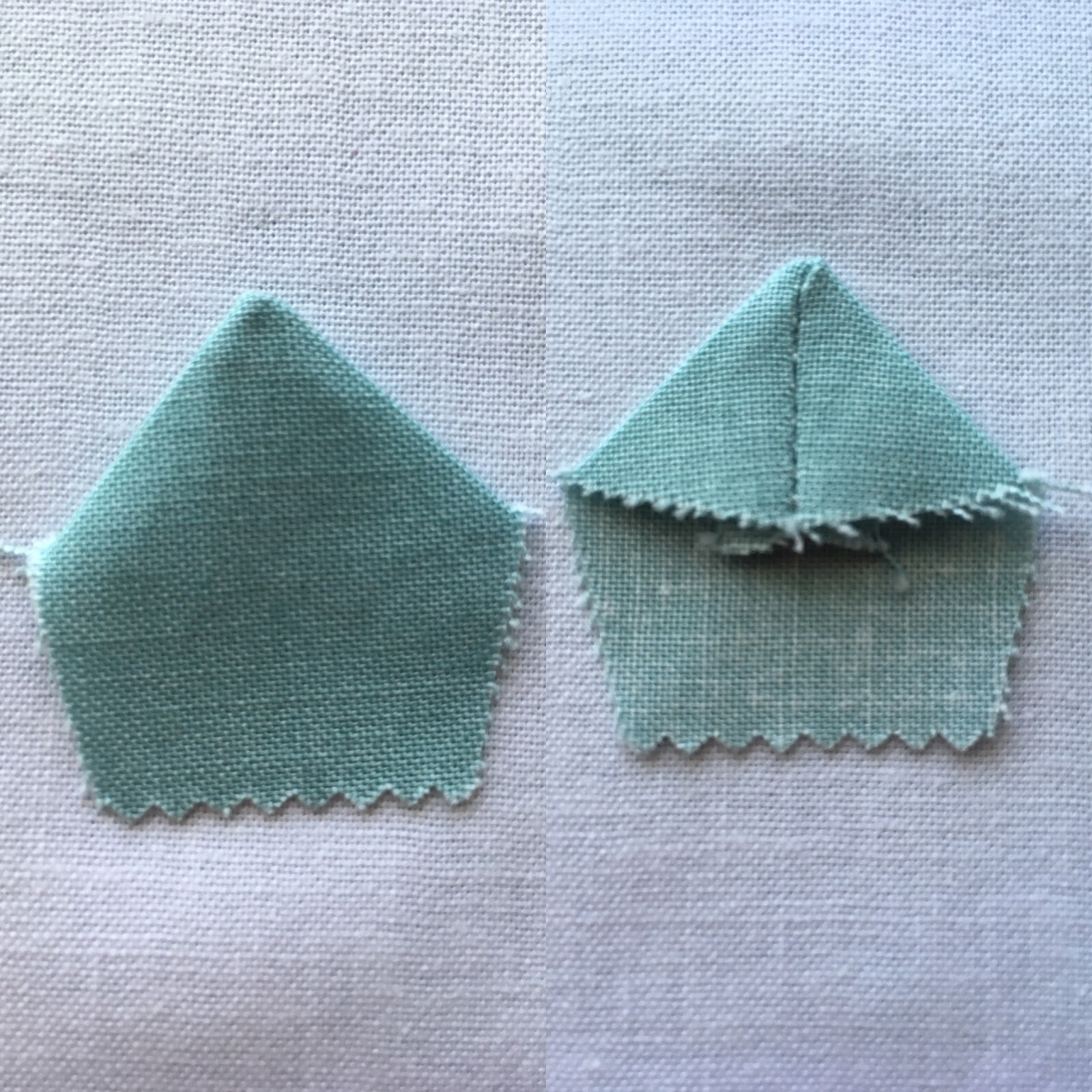 This is probably the trickiest part, but it’s not that hard. Once you have clipped the corner you want to flip the piece so the right side is out. It will make a point at the top that you want to iron.