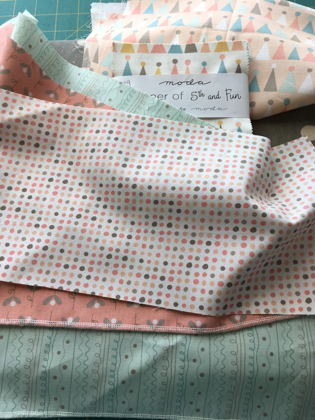Since I am known for my aprons, I chose to make one for this project. I found this darling fabric from Moda Fabric: Corner of 5th and Fun. I used a charm pack and bought a few half yard cuts.