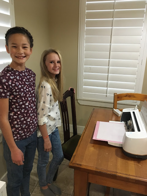 Once they picked out their patterns they got busy measuring and planning. One trick these girls learned is…When you place your fabric on the cutting mat if you roll it up first then unroll as you place it, you will have perfectly smooth, perfectly placed fabric.
