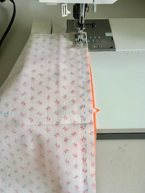 You will sew part 1 to part 2 along the sewing line. Lay them right sides together, match notches and sew along the line. Repeat for other panel.